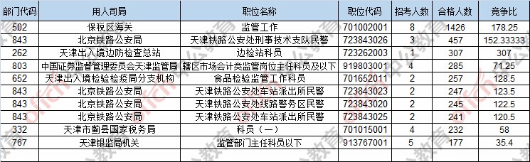 為幫助廣大考生更清晰的了解今日報名情況,天津中公網校整理了審核通過人數前五位的部門以及競爭比例最激烈的五大部門,供廣大考生參考: