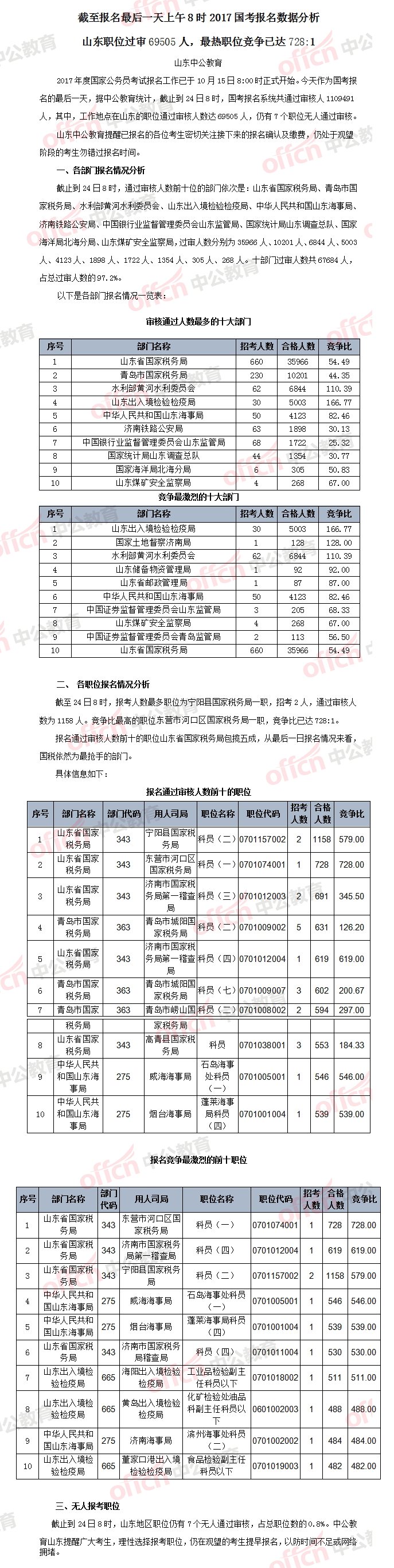 【截至24日8時(shí)】2017國(guó)考報(bào)名山東職位過(guò)審69505人,最熱職位競(jìng)爭(zhēng)已達(dá)728:1