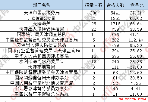 截止到24日8時,通過審核人數前三位的部門依次是:天津市國家稅務局、北京鐵路公安局、天津海關,三部門通過審核總人數達9018人,占通過審核總人數的70.3%。