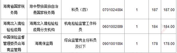 截止到24日8時(shí),報(bào)名人數(shù)較多的部門分別為海南省國家稅務(wù)局,海南出入境檢驗(yàn)檢疫局,中華人民共和國海南海事局。三個(gè)部門報(bào)名人數(shù)和為6257人,占報(bào)名總?cè)藬?shù)的75.67%。