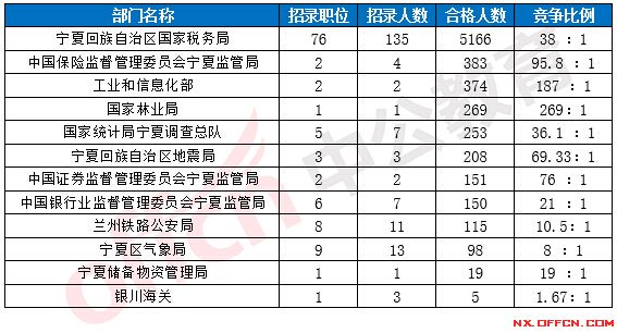 2017國(guó)考寧夏地區(qū)各部門(mén)報(bào)考情況