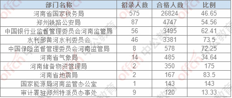 截止24日8時,通過審核人數(shù)前三位的部門依次是:河南省國家稅務(wù)局、鄭州鐵路公安局,中國銀行業(yè)監(jiān)督管理委員會河南監(jiān)管局,三部門通過審核總?cè)藬?shù)35006人,占通過審核總?cè)藬?shù)的86.84%。
