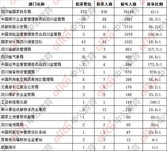 【截至24日17:30時】2017國考報名四川48833人過審,最熱職位713:1