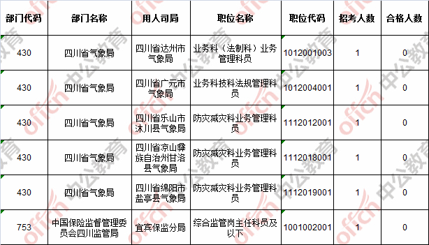 截止到24日17:30,工作地點(diǎn)在四川的職位仍有6個無人報考,以下是詳細(xì)情況: