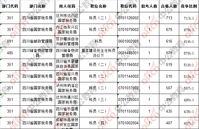 首日報名通過審核人數(shù)前十的職位主要集四川省國家稅務(wù)局等部門,具體信息如下: