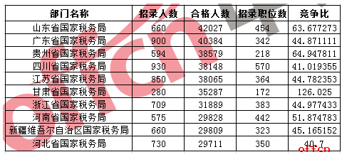 截止24日17時30分2017國考報名競爭最激烈十大部門