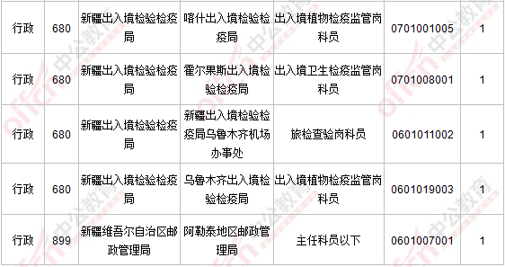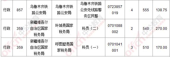 報名通過審核人數(shù)前十的職位主要集中在新疆維吾爾自治區(qū)國家稅務(wù)局、新疆儲備物資管理局、烏魯木齊鐵路公安局部門,具體信息如下: