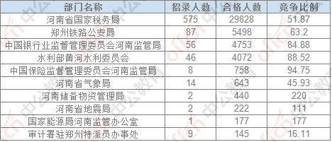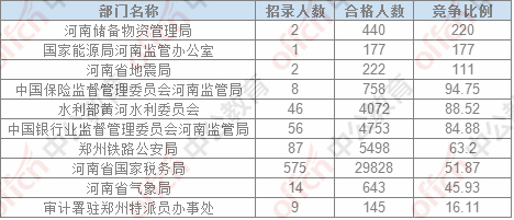 截止24日17:30,通過審核人數(shù)前三位的部門依次是:河南省國(guó)家稅務(wù)局、鄭州鐵路公安局,中國(guó)銀行業(yè)監(jiān)督管理委員會(huì)河南監(jiān)管局,三部門通過審核總?cè)藬?shù)40079人,占通過審核總?cè)藬?shù)的86.08%。