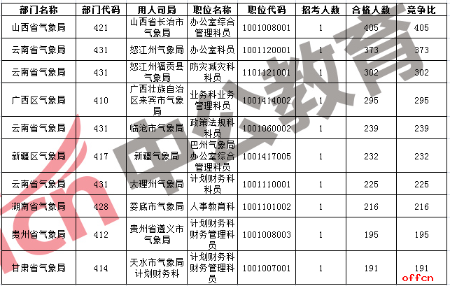 報名人數(shù)最多十大部門
