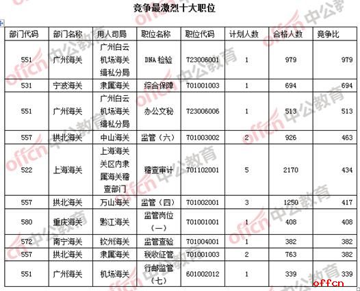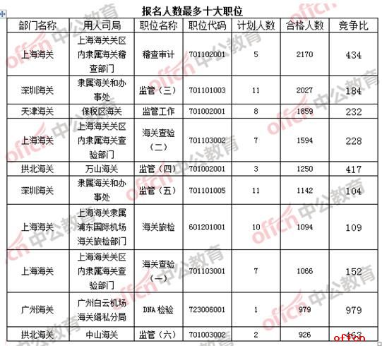 2017國考報(bào)名結(jié)束:海關(guān)過審46183人 平均競爭比59:1