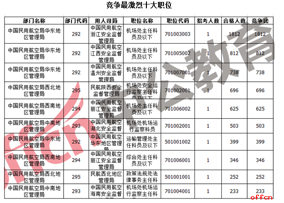 2017國考報名結(jié)束:民用航空管理局過審11441人 平均競爭比53:1