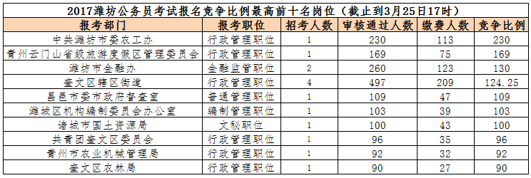 2017山東濰坊公務(wù)員報(bào)名第三日人數(shù)統(tǒng)計(jì) 報(bào)名期間最后一次更新數(shù)據(jù)