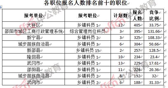 一、邵陽(yáng)公務(wù)員報(bào)名人數(shù):各職位分析
