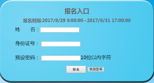 報名時間:2017年8月29日8∶00至8月31日17∶00。