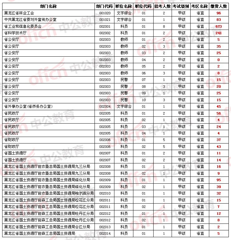 【省直】2014年黑龍江省公務(wù)員考試?yán)U費(fèi)人數(shù)統(tǒng)計(jì)[5月18日]