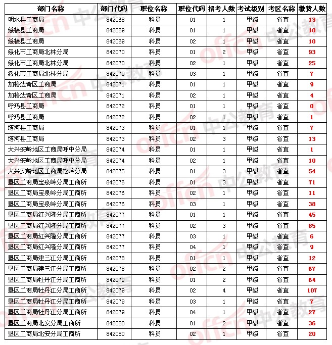 【省直】2014年黑龍江省公務員考試繳費人數統計[5月18日]