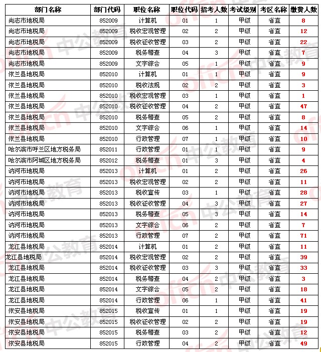 【省直】2014年黑龍江省公務(wù)員考試?yán)U費(fèi)人數(shù)統(tǒng)計(jì)[5月18日]