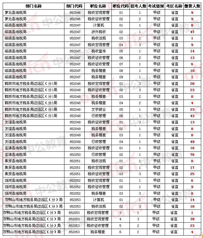 【省直】2014年黑龍江省公務(wù)員考試繳費人數(shù)統(tǒng)計[5月18日]