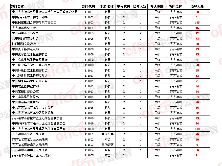 2014黑龍江公務(wù)員齊齊哈爾省考報(bào)名繳費(fèi)人數(shù)統(tǒng)計(jì)[5月18日]