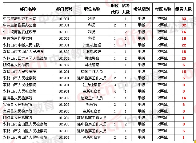 中公網(wǎng)校為參加2014年黑龍江省公務(wù)員考試的考生整理截止至5月18日早9點(diǎn)的雙鴨山考區(qū)繳費(fèi)人數(shù),由于報(bào)名網(wǎng)站報(bào)名情況每30分鐘統(tǒng)計(jì)一次,數(shù)據(jù)可能會(huì)有細(xì)微差異,所有數(shù)據(jù)僅供大家參考。