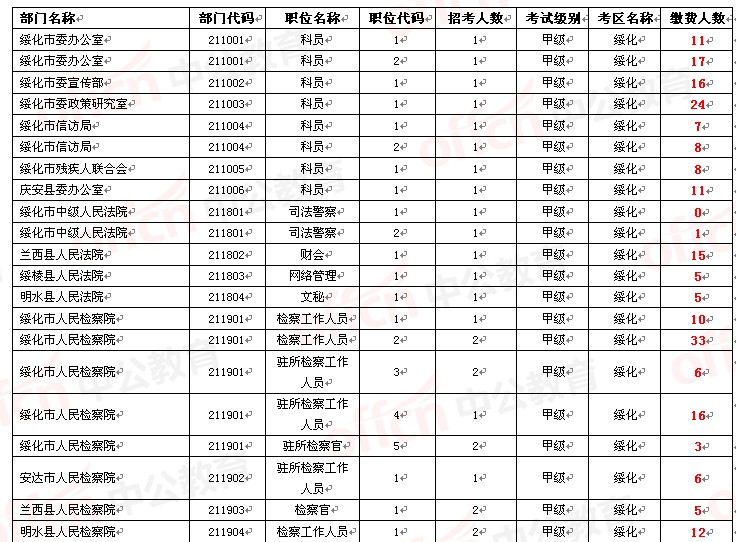 2014年黑龍江公務(wù)員綏化省考報名繳費(fèi)人數(shù)統(tǒng)計(jì)[5月18日]