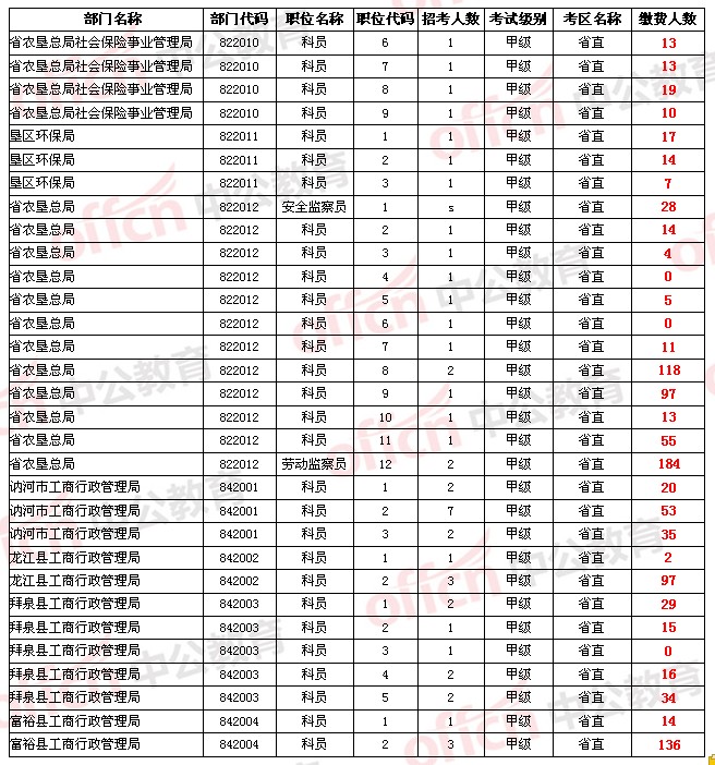 【省直】2014年黑龍江省公務(wù)員考試報名人數(shù)統(tǒng)計