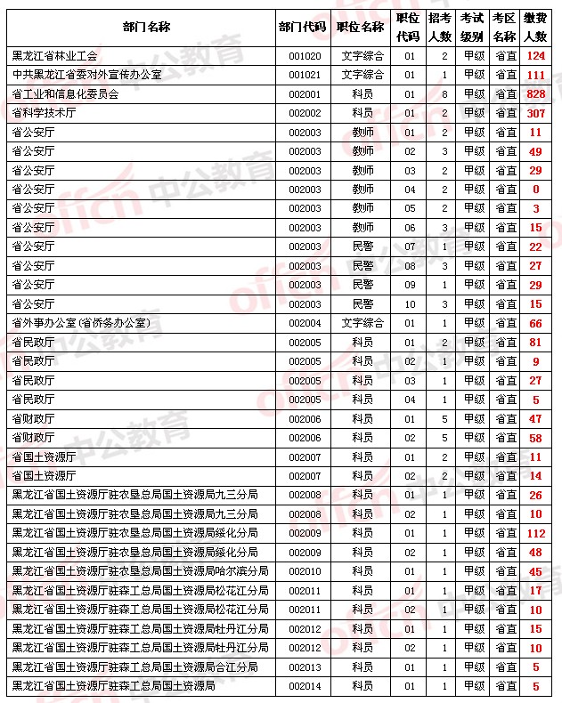 【省直】2014年黑龍江省公務(wù)員考試報名人數(shù)統(tǒng)計