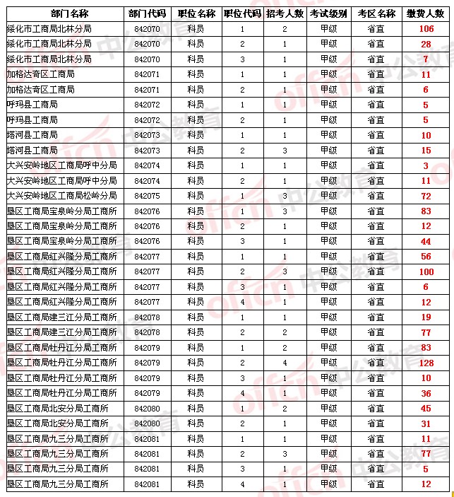 【省直】2014年黑龍江省公務(wù)員考試報名人數(shù)統(tǒng)計