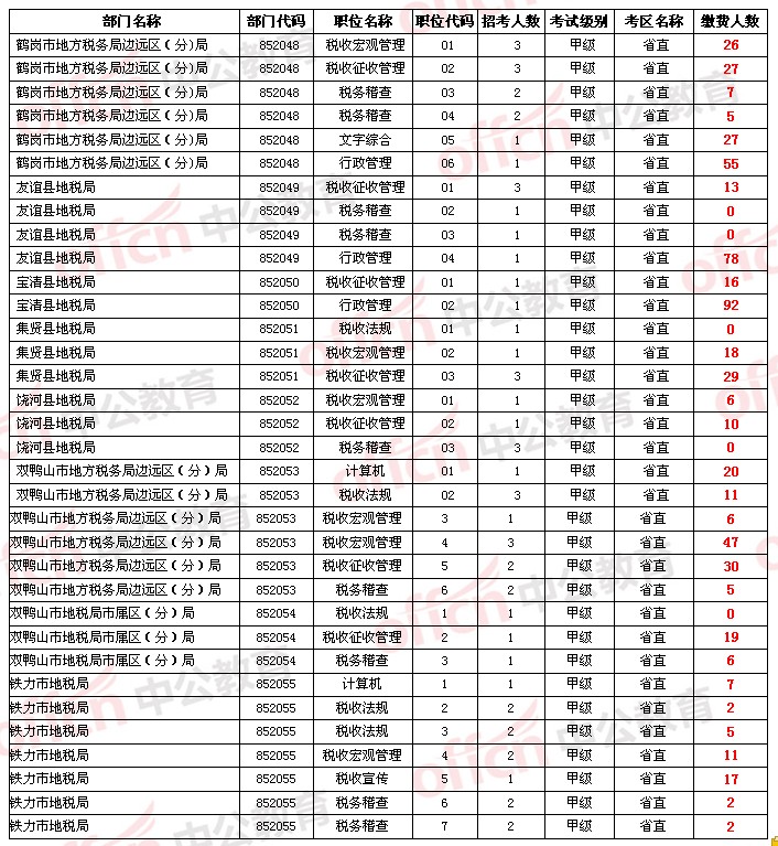 【省直】2014年黑龍江省公務員考試報名人數統(tǒng)計