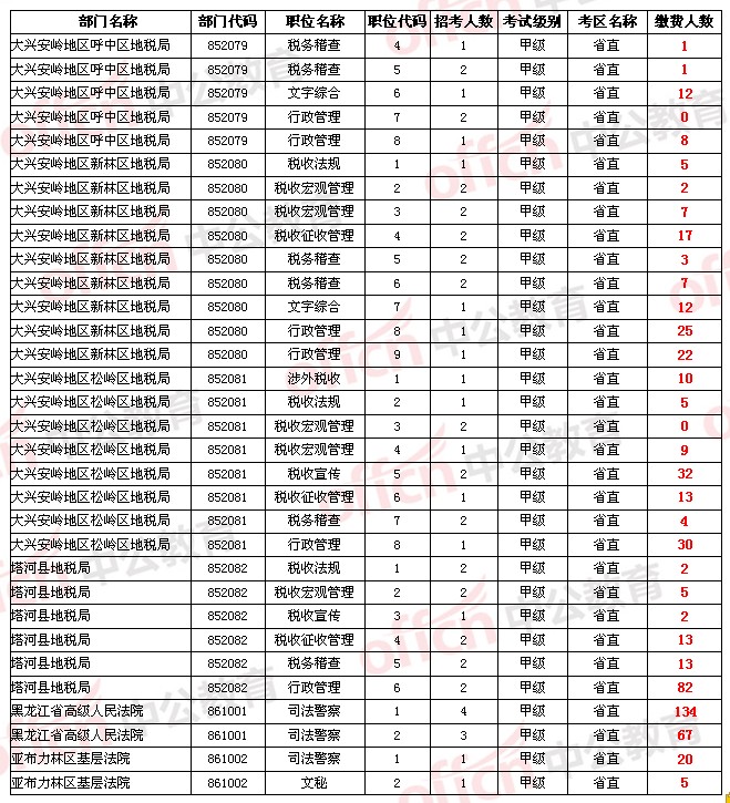 【省直】2014年黑龍江省公務(wù)員考試報(bào)名人數(shù)統(tǒng)計(jì)