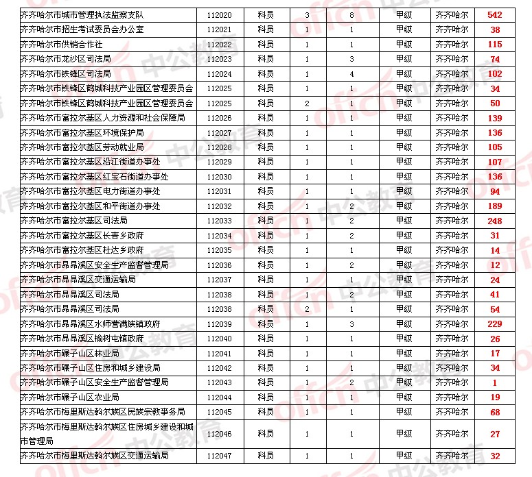2014年黑龍江齊齊哈爾省考報名繳費人數統計(5月19日)