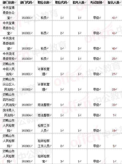 黑龍江中公教育為參加2014年黑龍江省公務(wù)員考試的考生整理截止至5月19日早9點的雙鴨山考區(qū)繳費人數(shù),由于報名網(wǎng)站報名情況每30分鐘統(tǒng)計一次,數(shù)據(jù)可能會有細(xì)微差異,所有數(shù)據(jù)僅供大家參考。