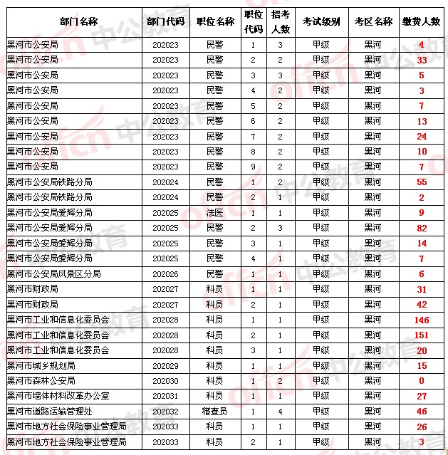 【黑河地區(qū)】2014年黑龍江省公務(wù)員考試報名人數(shù)統(tǒng)計