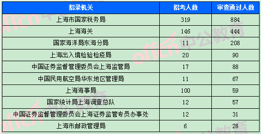 截止到31日18時,通過審核人數(shù)前三位的部門依次是:上海市國家稅務(wù)局,上海海關(guān),國家海洋局東海分局三部門通過審核總?cè)藬?shù)達(dá)1536人,占通過審核總?cè)藬?shù)的76.38%。