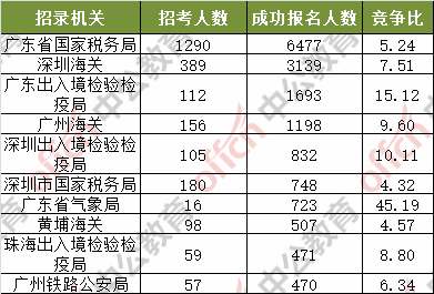 為幫助廣大考生更清晰的了解今日報名情況,中公網(wǎng)校整理了審核通過人數(shù)前十位的部門以及競爭比例最激烈的十大部門,供廣大考生參考: