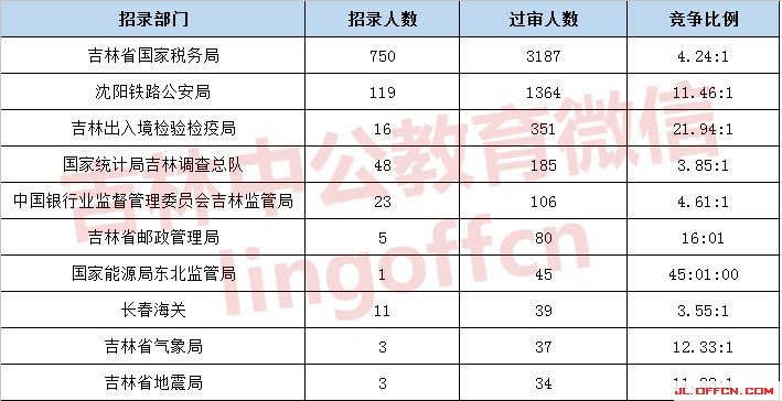 截止到11月1日16時(shí),通過(guò)審核人數(shù)前三位的部門依次是:吉林省國(guó)家稅務(wù)局、沈陽(yáng)鐵路公安局、吉林出入境檢驗(yàn)檢疫局,三部門通過(guò)審核總?cè)藬?shù)達(dá)4902人,占通過(guò)審核總?cè)藬?shù)的90.07%?!?br />