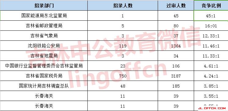 報(bào)名競(jìng)爭(zhēng)最激烈的前十的部門