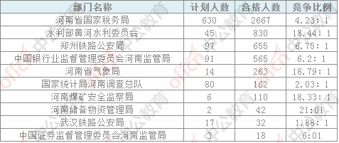 截止到11月1日16時(shí),通過審核人數(shù)前三位的部門依次是:河南省國家稅務(wù)局、水利部黃河水利委員會、鄭州鐵路公安局,三部門通過審核總?cè)藬?shù)達(dá)4152人,占通過審核總?cè)藬?shù)的77.25%。