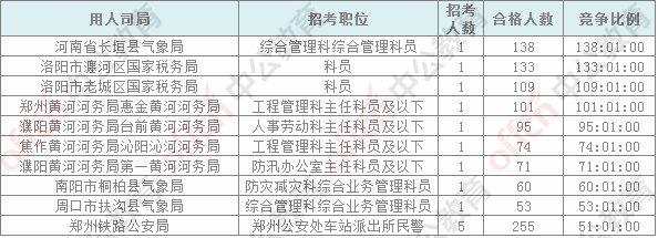 報(bào)名通過審核人數(shù)前十的職位主要集中在水利部黃河水利委員會、鄭州鐵路公安局、河南省氣象局、河南省國家稅務(wù)局,具體信息如下: