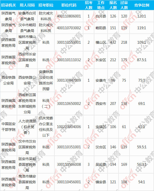 報(bào)名競(jìng)爭(zhēng)最激烈的前十職位