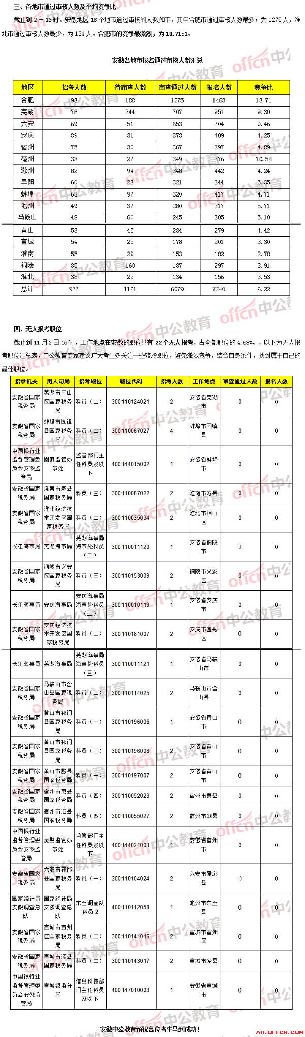 【11月2日16時(shí)】2018國考報(bào)名人數(shù)統(tǒng)計(jì):安徽7240人報(bào)名,6079人通過審核