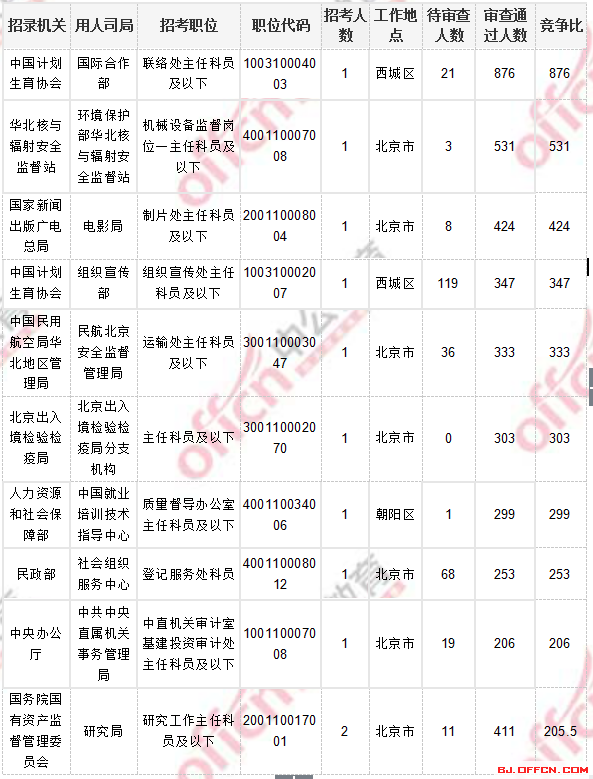 2018國(guó)考北京地區(qū)過(guò)審人數(shù)最多十大職位
