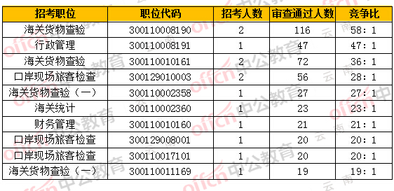 當前河口海關(guān)行政管理,職位代碼300110008191的崗位相比報名人數(shù)為多,招1人,17人報名待審,47人過審,熱門比為:64:1