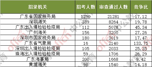 截止到4日16時(shí),通過(guò)審核人數(shù)前三位的部門依次是:廣東省國(guó)家稅務(wù)局、深圳海關(guān)、廣東出入境檢驗(yàn)檢疫局,三部門通過(guò)審核總?cè)藬?shù)達(dá)27454人,占通過(guò)審核總?cè)藬?shù)的61.2%。