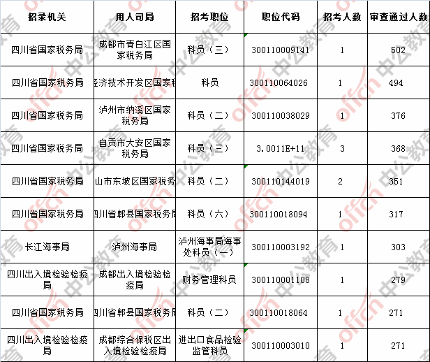 第五日報名通過審核人數(shù)前十的職位主要集四川省國家稅務局等部門,具體信息如下: