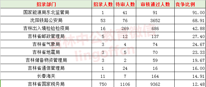 截止到11月4日16時(shí),通過審核人數(shù)前三位的部門依次是:吉林省國(guó)家稅務(wù)局、沈陽鐵路公安局、吉林出入境檢驗(yàn)檢疫局,三部門通過審核總?cè)藬?shù)達(dá)13700人,占通過審核總?cè)藬?shù)的91.18%。