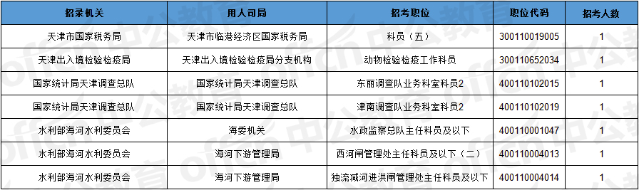 截止到5日16時(shí),工作地點(diǎn)在天津的職位共有7個(gè)無人報(bào)考,占全部職位的3.3%。下圖是無人報(bào)考職位一覽表,中公網(wǎng)校專家建議廣大考生多關(guān)注一些較冷職位,避免激烈競爭,結(jié)合自身?xiàng)l件,找到屬于自己的職位。