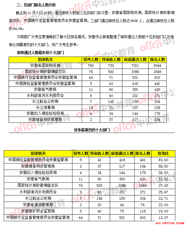 【11月5日16時】2018國考報名人數(shù)統(tǒng)計:安徽通過審核總?cè)藬?shù)破萬,還有8個職位無人報考