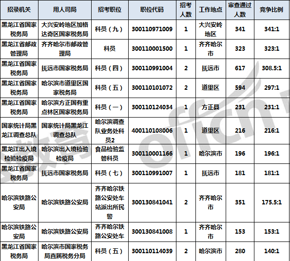 【11月5日16時】2018黑龍江國考報名人數統(tǒng)計:最熱競爭職位341:1 ,27個職位無人報名
