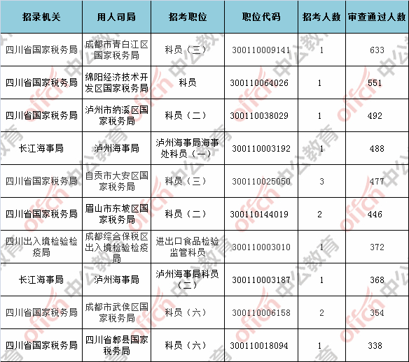 第五日?qǐng)?bào)名通過審核人數(shù)前十的職位主要集四川省國(guó)家稅務(wù)局等部門,具體信息如下: